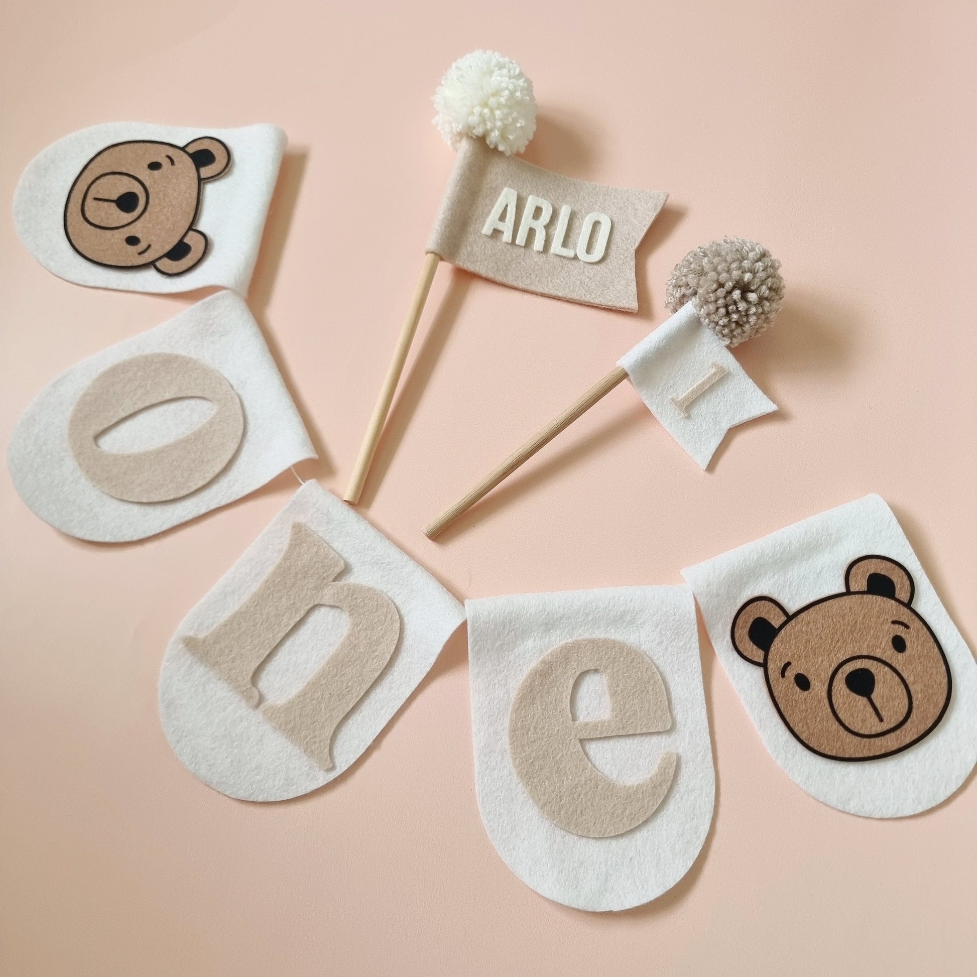 Simply select your felt colours from the options provided. (see other photos for colour reference) Pictured is white/beige.